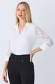 O Grande Diferencial Reside em Suas Mangas, Inteiramente Confeccionadas em Renda Delicada com Padronagem Floral, Que Conferem Uma Distinção Clássica e Uma Transparência Sutil Ao Design. o Fechamento Frontal É Valorizado Por Botões com Acabamento Metálico em Dourado, Que Funcionam Como Pontos de Luz Estratégicos, Elevando a Essência Premium da Construção Impecável One Up.