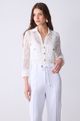 Um Clássico Revisitado com Um Toque de Delicadeza e Luxo. a Camisa Renda Off Gold É a Peça Perfeita para Quem Busca Sofisticação e Feminilidade em Um Único Item. Sua Modelagem em Camisa, com Mangas 7/8, Oferece Um Visual Elegante e Atemporal. Confeccionada em Tecido de Renda, a Camisa Proporciona Um Toque Suave e Uma Transparência Sutil, Adicionando Um Charme Inigualável. a Cor Off-White, Delicada e Versátil, Harmoniza Lindamente com o Detalhe Dos Botões de Fechamento Na Cor Ouro, Que Conferem Um Acabamento Luxuoso e Impecável à Peça. Perfeita para Coordenar com a Calça White com Bolsos, Criando Um Look Harmonioso e Sofisticado para Diversas Ocasiões.