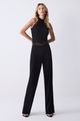 Macacão Crepe Black Swa Gold e Mel Confeccionado em Crepe, com Pernas Amplas Que Proporcionam Um Caimento Fluido e Sofisticado, Ele É Perfeito para Quem Busca Um Visual Impactante. a Gola Alta e Modelo sem Mangas Confere Um Toque Refinado, Enquanto As Aplicações de Cristais em Tons de Ouro e Mel Trazem Um Brilho Exclusivo. com Bolsos Posteriores Que Unem Estilo e Funcionalidade, Este Macacão É a Peça Ideal para Quem Quer Se Destacar.