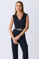 O Top Thomas É Confeccionado em Tecido Amni de Alta Tecnologia. Seu Design Exclusivo Apresenta Um Decote Transpassado Que Valoriza o Colo. Esta Peça sem Manga É Um Ícone de Moda Sofisticada e Minimalista. Ela Combina Perfeitamente com a Calça Black Cós Fabiana. a Composição Monocromática Cria Um Visual de Luxo Silencioso Absoluto. Uma Alternativa Refinada Que Substitui Camisas Tradicionais com Muita Feminilidade.