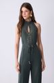 Exale Sofisticação e Estilo com o Top Foliage Swa Mel, Uma Peça Que Combina Elegância e Um Toque Artístico. Sua Modelagem de Top sem Mangas, com Gola Alta e Amarração Nas Costas, Oferece Um Visual Moderno e Refinado. Confeccionado em Tecido Fluity, o Top Proporciona Um Caimento Suave e Um Conforto Excepcional. a Cor Verde Militar, Clássica e Versátil, Serve de Base para o Deslumbrante Detalhe de Pedrarias Aplicadas à Mão, Que Formam Um Desenho Exclusivo e Adicionam Um Brilho Sutil e Luxuoso à Peça. Perfeito para Coordenar com a Calça Foliage Gold, Criando Um Conjunto Harmonioso e Completo, Ideal para Diversas Ocasiões.
