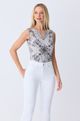 O Top Yasmine É Uma Peça Que Combina Arte e Estilo, Ideal para Quem Busca Um Visual Marcante. Sua Modelagem Versátil e sem Mangas, com Decote V, Oferece Um Caimento Elegante e Moderno. Confeccionado em Tecido Fluity, o Top Proporciona Um Toque Suave e Um Conforto Excepcional. a Estampa Yasmine, com Seus Desenhos Que Remetem a Joias e Arabescos em Tons de Bege, Preto e Branco, Cria Um Efeito Visual Sofisticado e Original.