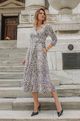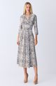 O Vestido Adriele É Confeccionado em Fluity, Proporcionando Leveza e Toque Sedoso. Sua Modelagem Evasê com Manga 3/4 e Comprimento Midi Define Um Refinamento Absoluto. a Estampa Adriele em Tons Neutros Exala Uma Essência Premium e Atemporal. Este Modelo Valoriza o Movimento com Conforto e Uma Elegância Atemporal Única. Uma Peça Única e Versátil Que Substitui Conjuntos de Camisas com Máxima Sofisticação. a Padronagem Discreta Reforça Um Visual de Estilo Prestigioso e Feminino.