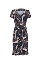 Elaborado em Fluity, Tecido Premium de Toque Suave e Caimento Impecável. Este Vestido Na Cor Bege com Estampa em Preto e Tons Terrosos Exibe Um Padrão Geométrico Abstrato, Adicionando Um Toque Visual Único. com Decote em V Transpassado, Mangas Curtas e Faixa Na Cintura para Amarração, Garante Conforto e Estilo em Todas As Suas Composições.