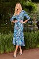 Vestido Elise Confeccionado em Fluity, com Suas Mangas 3/4 Elegantes e Um Delicado Decote em V, Este Vestido Exala Feminilidade e Charme. Possui Uma Estampa Localizada Que Traz Originalidade à Peça, Seu Comprimento Midi Proporciona Uma Silhueta Graciosa e Elegante. o Elástico Na Cintura, Acompanhado Por Um Cinto Fixo Adornado Por Uma Deslumbrante Fivela em Cor Prata Trabalhada em Cristais, Realça a Cintura e Modela o Corpo.