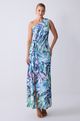 Destaque-Se com a Sofisticação do Vestido Pamela Nó. Sua Modelagem Longa de Um Ombro Só e Fenda Sutil Oferece Um Caimento Elegante e Sensual. Confeccionado em Dubai, Apresenta a Estampa Pamela, com Vibrantes Padrões de Folhagens em Tons de Azul e Verde. o Detalhe de Nó Na Cintura Valoriza a Silhueta, Conferindo Uma Personalidade Marcante e Moderna, Perfeito para Um Look Impactante.