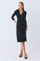 Vestido Confeccionado em Crepe com Modelagem Wrap, Decote V Transpassado com Amarração Frontal e Design de Mangas 3/4 com Aplicação de Ilhós.
